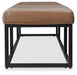This accent bench takes a contemporary approach to everyday function. Showcasing a sleek combo of caramel leather upholstery and a black frame, it's a chic and convenient seating solution. Place this bench by the entryway, or at the foot of your bed, as a spot for slipping on shoes or resting bags and purses.
